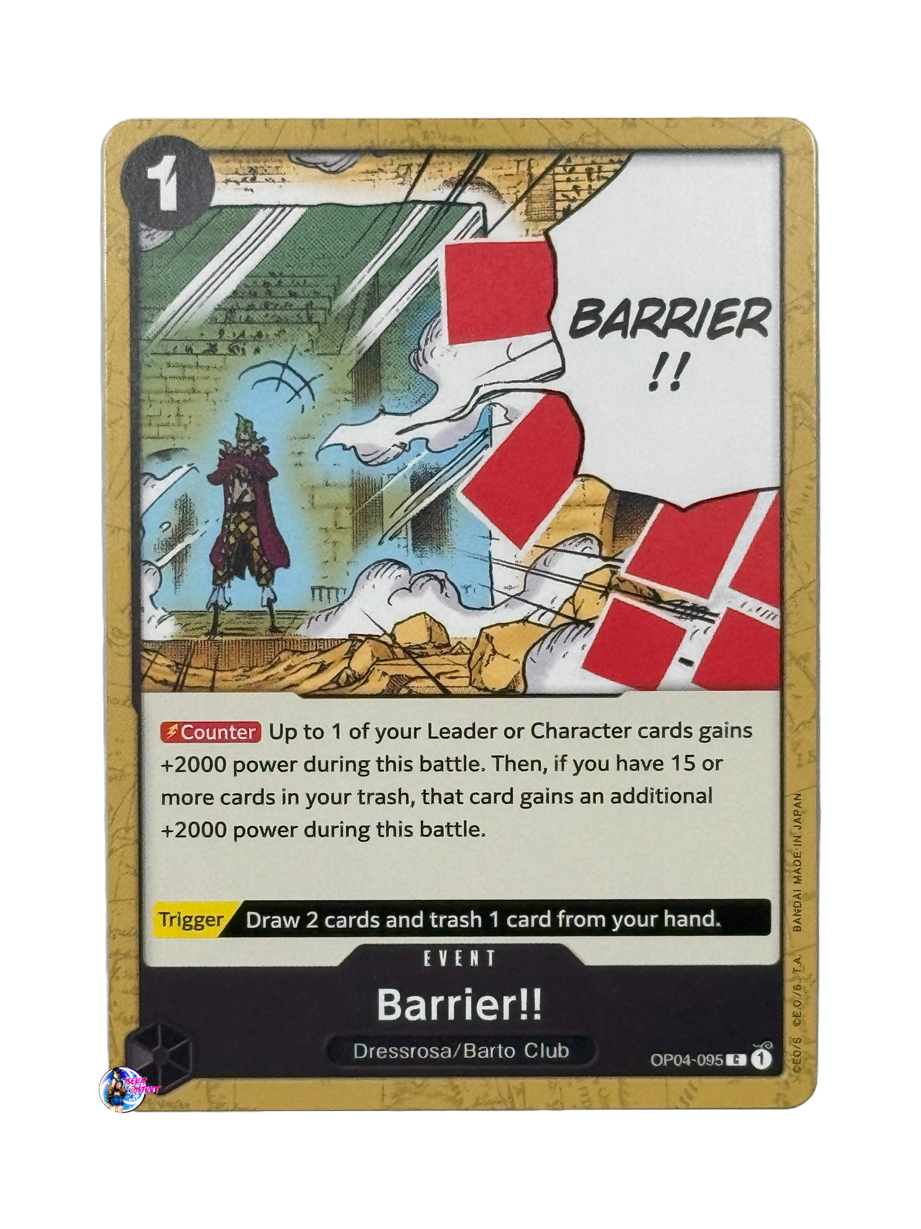 Card Type: EventColor: BlackCost: 1Subtype(s): Dressrosa, Barto ClubRarity: Common Card Effect: [Counter]: Up to 1 of your Leader or Character...