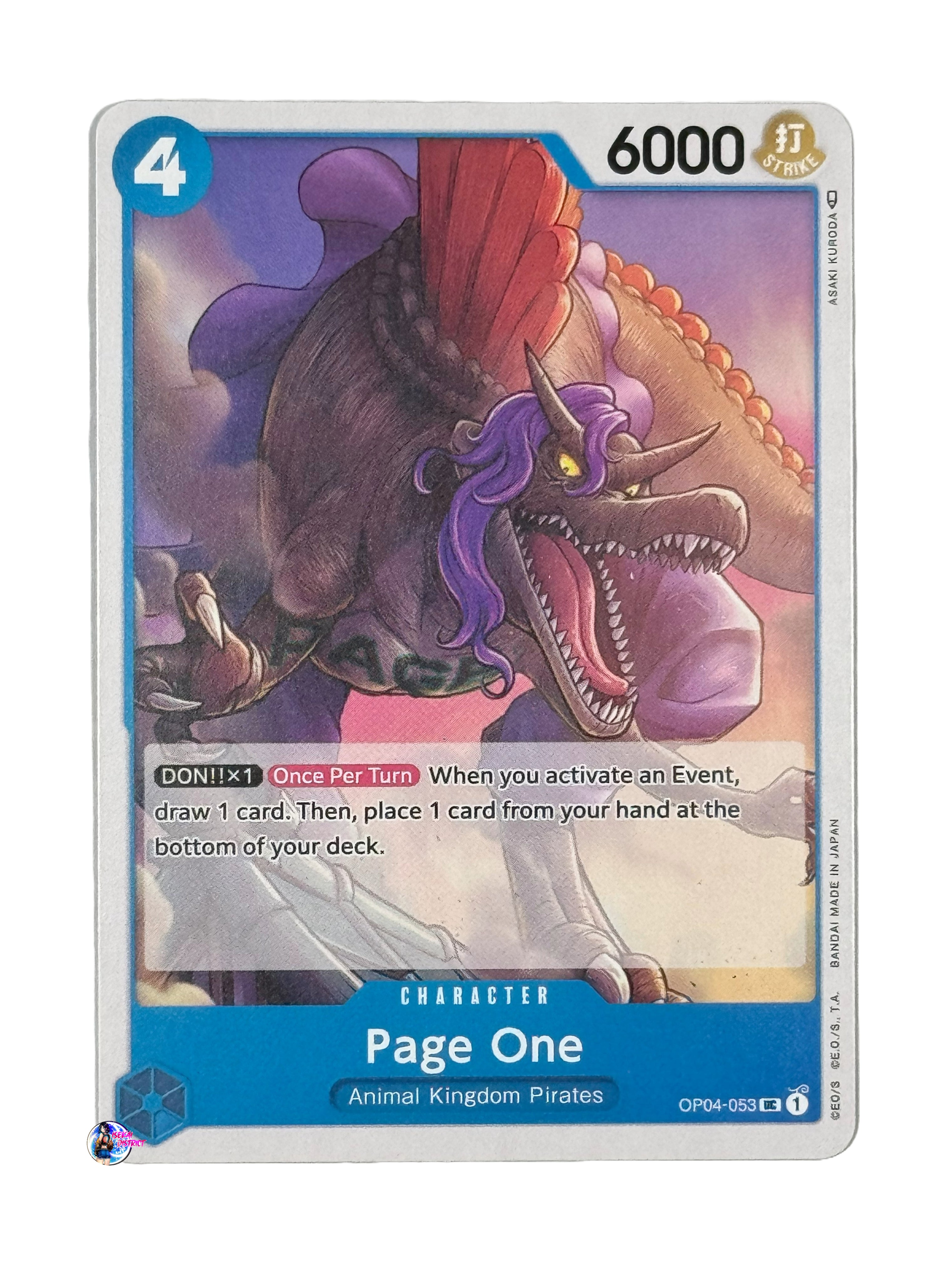 Card Type: CharacterColor: BlueCost: 4Power: 6000Attribute: StrikeSubtype(s): Animal Kingdom PiratesRarity: Uncommon Card Effect: [DON!! x1] [Once Per Turn] When you...