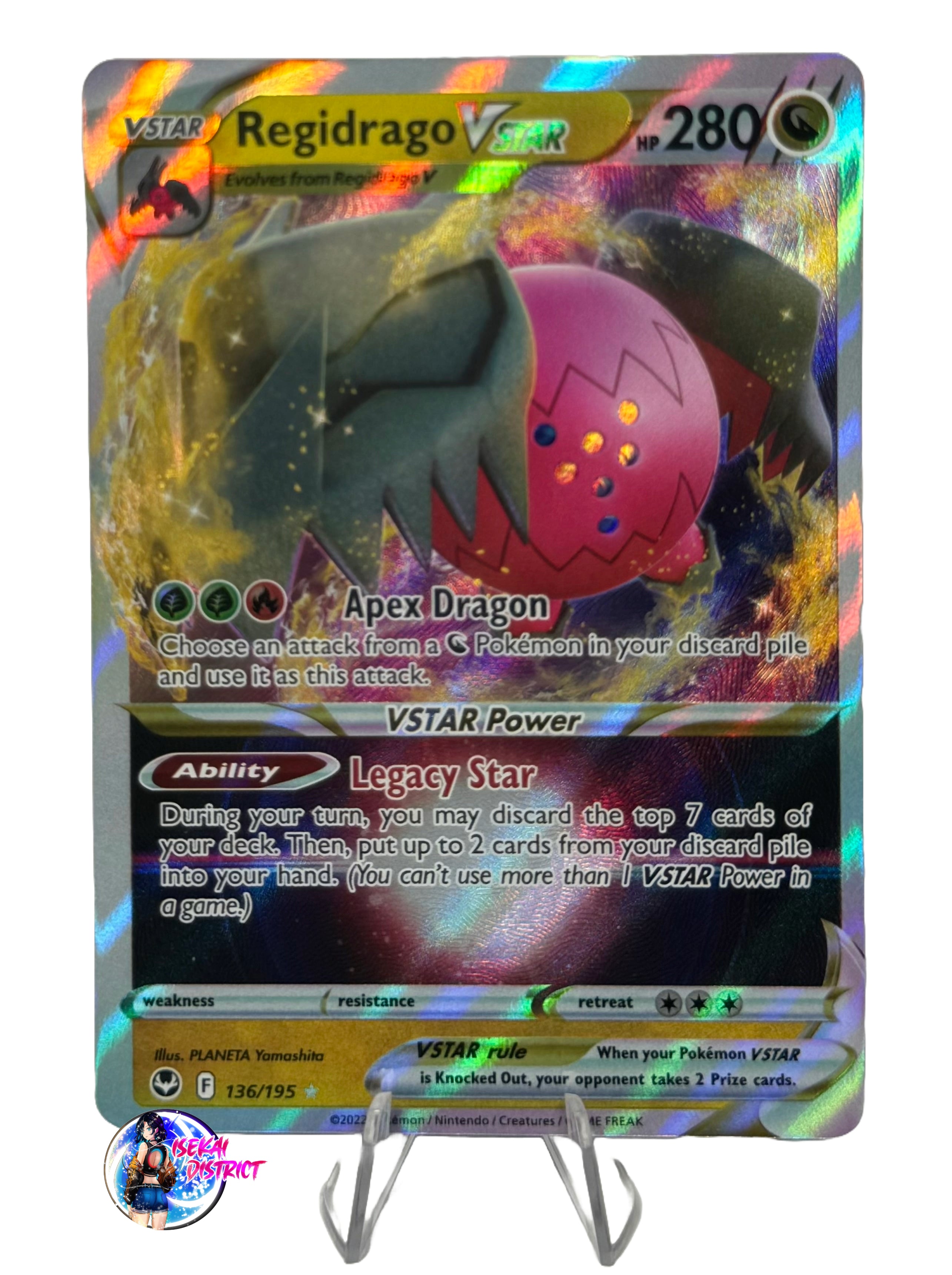 Unleash the power of Pokemon Silver Tempest with Regidrago VStar #136. Take on your opponents with this impressive and rare...